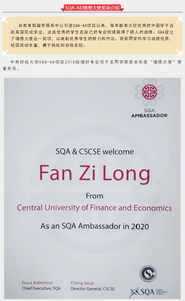 范子龙喜获“SQA理想大使”称号…