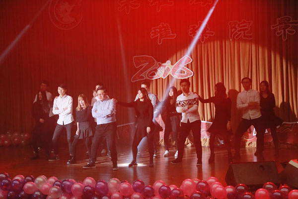 院长王晓红老师携外国语学院众多老师为我们奉上的踢踏舞,更是展现出师生合乐一家欢的喜悦心情。精湛的舞姿也令所有的师生为止惊叹不已,并致以了热烈的掌声。