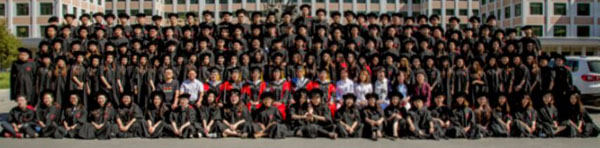 典礼开始前,SQA-AD项目2016届全体学生着结业服和领导及嘉宾在主教楼前合影留念。