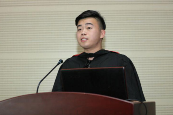接着,SQA-AD项目2016届学生代表袁亚龙同学和精英班学生代表高超同学分别发言,表达了对学校和老师的感激之情以及对学长学姐的祝福之情。