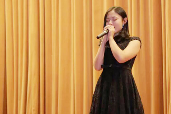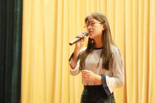 第一位出场的是边静雅,她为大家带来了《begin again》,悠扬的歌声在大礼堂中回荡着,幽婉的音符,无缝的组合在了一起,我们似乎已然抵达未来的异国他乡。