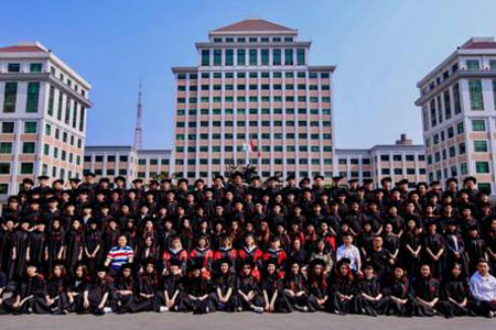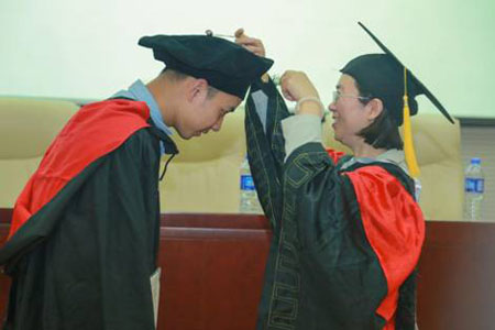 中央财经大学外国语学院院长黄振华为毕业生拨穗