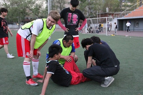 学生活动之足球赛篇 2011-04-20关注:次 2011年4月15日下午,我院与金融学院,在大学足球场,成功举行了一场足球友谊赛。我院以6:3的成绩获胜。 双方队员赛前合影 援救对方受伤队员 研究战术、相互鼓劲